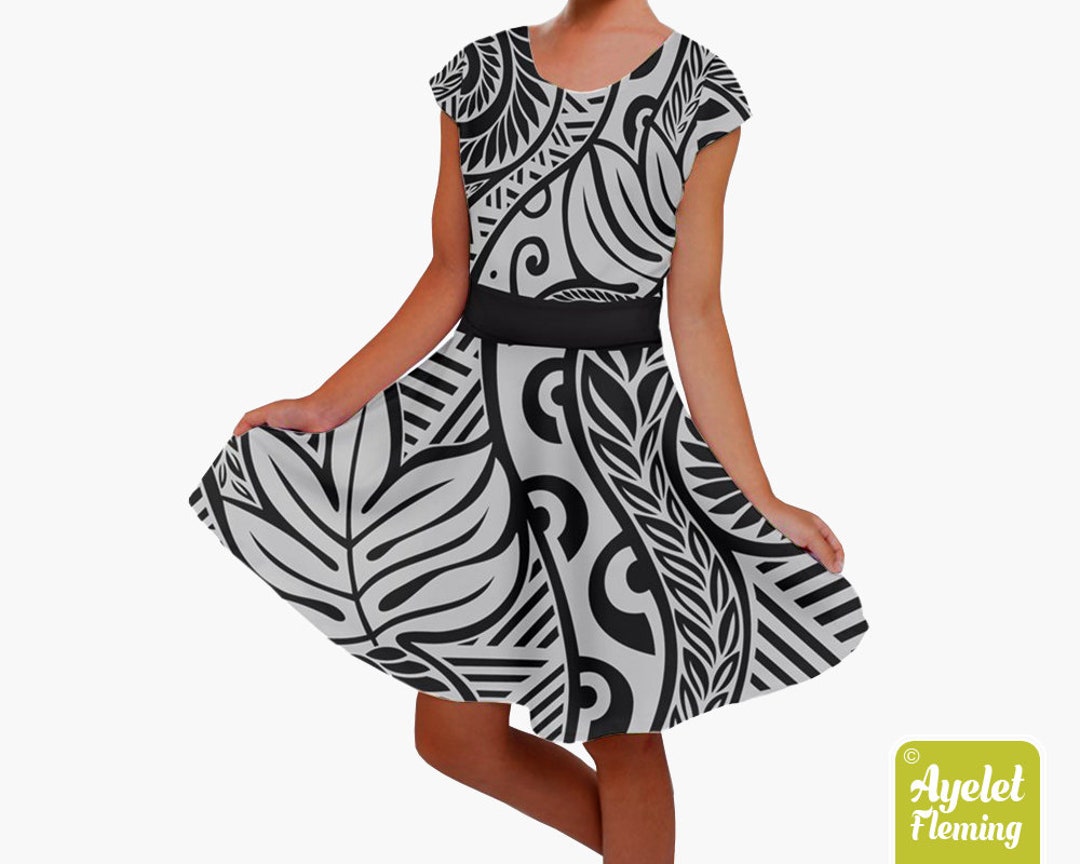 Polynesian Dress Girls Hawaiian Dress Ulu Black Gray Short Etsy Osterreich